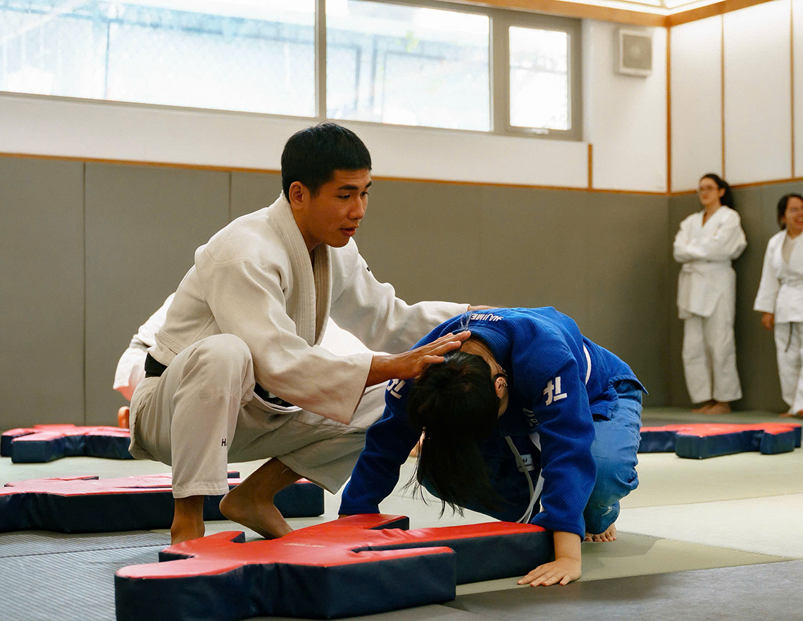 フランス柔道連盟(FFJ)の基準および嘉納治五郎の教えに根ざした日本の柔道精神をふまえ、遊びや体験を重視するフランス式と、型や反復、規律を大切にする日本式の指導法を融合。バランスの取れた独自の指導スタイルが特徴だ。