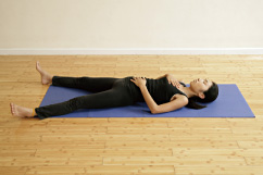 そこで、簡単に出来る呼吸法を紹介しましょう。まず姿勢を正し、足を組んで座ります(写真上)。また仰向けに寝ても構いません(同下)。目を閉じ、口はつむったまま鼻だけを使ってゆっくり息を吸い、お腹から胸に向かって徐々に膨らまし、心地よい程度に息を止めます。そして今度はゆっくり息を吐きながら胸からお腹へと萎めていき、再び心地よい程度に息を止めます。これを自分のペースで繰り返します。特に重要なのが息を止める「クンバカ/Kumbhaka」。この時、プラナが全身をめぐるのです。