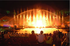 島の高台では、毎晩豪華なウォーターショーが開催されている。収容人数はなんと1万2000人。ベトナムらしく、最初は伝統舞踊や歌謡ショーで始まるが、その後は壮大な音楽とカラフルなライトに合わせ、水が縦横無尽に噴き出す、美しいショーを開催。途中、噴射された水をスクリーンに仕立てた映像の放映などもある。 ※上演時間は月曜日:20:30〜22:15、火〜日曜日21:15〜22:00。