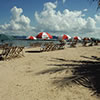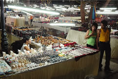 クルーズ船乗り場から車で5分ほどの所に、いくつものパラソルが並ぶビーチがある。そのエリアはバイチャイの街の中で一番賑わう界隈。旅行者に人気の4ツ星ホテル、ロイヤルホテルが経営するレストランバー「ブルーコーストバー」、そして美味しいケーキやパンが楽しめるお店としてハノイで有名な「グエンソンベーカリー」などもある。また毎晩夜19:00〜24:00には、周辺に約60もの出店が並び、Tシャツや真珠など、夜風に吹かれながらのんびり買い物することができる。