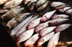 市場には、いつも新鮮な魚がたくさん。この魚はベトナム語でカーホン(Ca Hong)。意味はピンク魚で、見た目そのまま