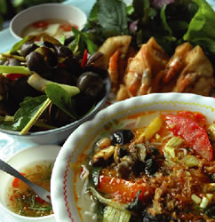ベトナム人にとって、おこわは朝ごはんとしてメジャーな食べ物。天秤で売り歩いていることが多く、ココナッツ入り、ピーナッツ入り、とうもろこし入りなど、たくさんの種類がある。おこわはハスの葉などに包んでくれテイクアウトも可能。値段は1000ドン〜2000ドン(約10円)。お店で食べたいなら、ハノイのカフェ街と呼ばれるハンハイン通りのお店がお勧め。ここの売りは鶏おこわ。柔らかジューシーな鶏肉ともち米のコンビネーション、そして上からかける醤油ベースのタレがなんとも美味な一品。