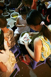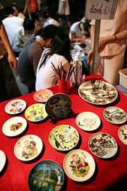 陶器の絵付け (map 16) ベトナム人の絵心にビックリの、陶器の絵付け体験。みんなナカナカの腕前。絵に自信のない人には、イラスト集も貸してくれる。1つ6000ドン(約40円)。