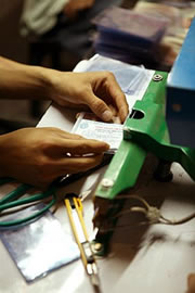 パウチっこ? (map 3, 10) 免許証、I Dカードなど、大切な書類はいつでもどこでもコーティング! ってことで、いくつかの露店で営業中。1枚1万ドン(約70円)。