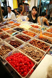 お口の恋人「オーマイ」 (map 13) 乾燥させた梅に、生姜や砂糖をまぶした健康オヤツがオーマイ(O Mai)。甘酸っぱい美味しさがクセになる。100g5000ドン(約35円)〜。