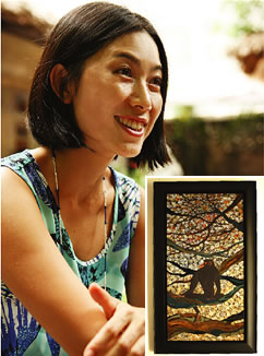 画家を志し、芸術家の町として名高いバリのウブドゥに行く途中、「ついでに」立ち寄ったべトナム。そこで、漆画との運命的な出会いを果たしてしまったという安藤さん。「初めは絵画としての漆画よりも、独特の質感を持つ『漆』という素材に興味がありました。でもいざ描いてみると、自分好みの絵画表現だとわかったんです」。そんな彼女は現在、ハノイ市内で天然漆を使った漆画のギャラリーとワークショップを営んでいる。「ベトナムの天然漆でなければ出せない質感を持った漆画を、もっと多くの方に知って欲しい」。その想いが詰まったギャラリーにはカフェも併設、今まで本物の漆画を見たことがないという方は、ぜひ訪ねてみて。