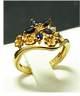 Aサファイヤ×ダイヤのリング ラグジュアリーで遊びゴコロのあるお花のモチーフリング(350US$)は、指先を可愛く演出してくれる。