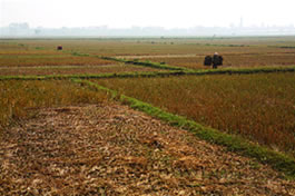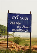 コーロアのバス停から、来た道を少し戻ると、左手に「Welcome to Co Loa」と書かれた青い看板が見える。ここを左へ曲がり20分ほど歩けば、目指すコーロア城址地だ