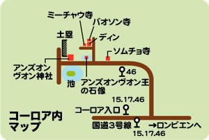 ディンの左横にあるのがミーチャウ(My Chau)寺。ここはアンズオンヴオン王の愛娘ミーチャウを祭った寺で、彼女の姿をした首のない「ミーチャウ岩」が、黄色い着物をまとい、祭られている(伝説参照)