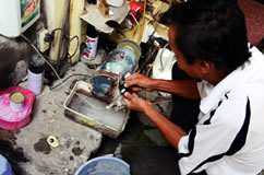 ネジがなくなった、柄が折れたなど、日本では「買ったほうが安いですよ」と言われるような修理でも、激安でできてしまうのがベトナム。片方の柄を無くしても、似たような柄を探し出し、修理してくれるぞ。