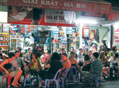 旧市街のこの交差点には、夕方になると路上に並べられた椅子に座ってビールを飲む、大勢の欧米人観光客の姿が見られる。この周辺には、バックパッカーに人気のあるミニホテルやバーが多いのだ。