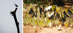 【写真説明】左上より ■コウノトリ ■蝶たちが水を飲んでいる場面に遭遇 ■道中、こんな光景にも出会える ■主に鳥類保護プロジェクトに関わってきた「鳥博士」。鳥に関することなら、この人に尋ねよう 広々としたワニの沼が視界に飛び込んでくると、ここまでの道のりが労われる思い。残念ながら今回、ワニは見られず…。ここでの宿泊も可能