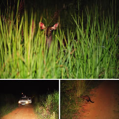 動物の活動時間は主に夜。ナイトサファリでは、シカやジャコウネコ、手乗りジカ、野生牛ガウルなどが現れる。とっても運がよければ、トラやゾウ、6〜8頭しか確認されていないサイなどを見られるかも!?