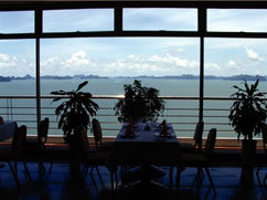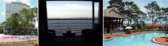 ハロン湾の大パノラマが部屋にいながらにして楽しめる最新高層ホテル。泊まるならオーシャンビューの部屋を。床から天井まで壁一面が窓になっていて、ベッドの中からでも海が眺められる。圧巻なのが14階レストランからの眺め(右写真)。ここに足を踏み入れると、誰もが「わあっ」とため息をつく。ガラス窓の向こうには、視界いっぱいに広がるハロン湾…。 <HOTEL DATA>