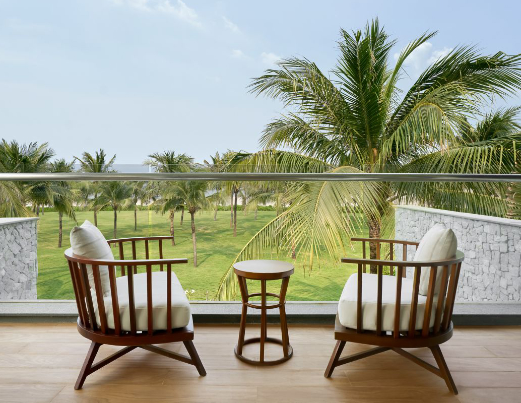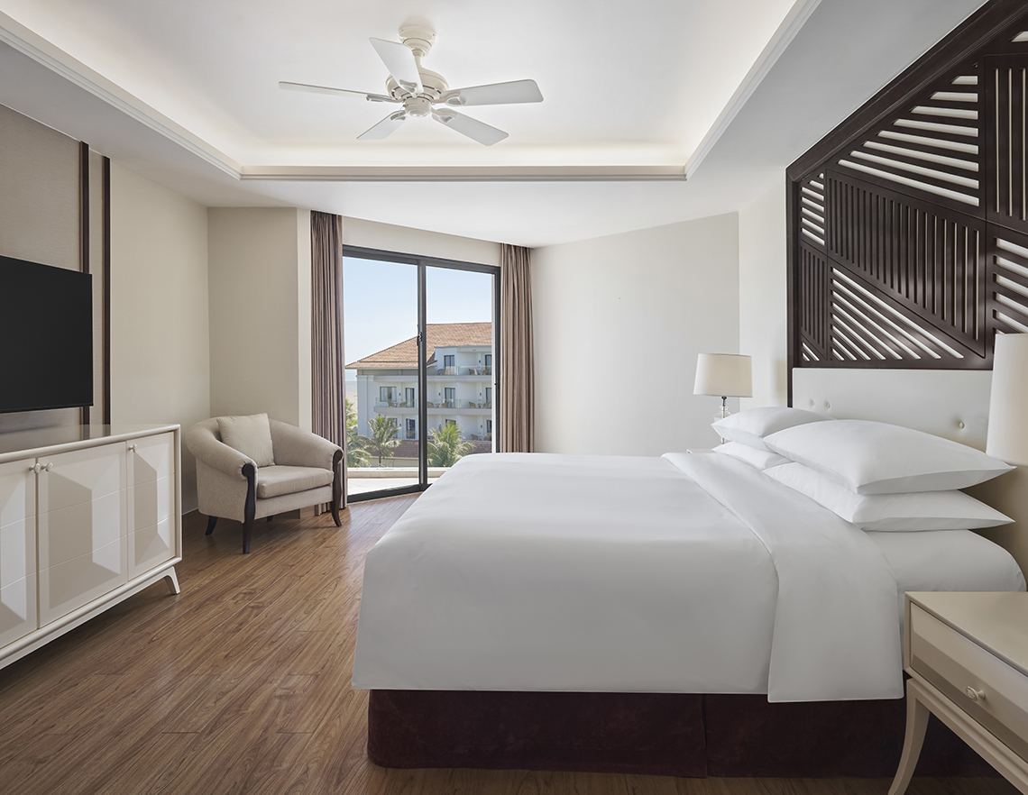 「デラックスオーシャン/Deluxe Ocean」は(40㎡、大人2名&12歳未満の子ども2名)1泊300万VNDでミニ冷蔵庫付き、キングベッド1台、バルコニーからはオーシャンビューを楽しめる