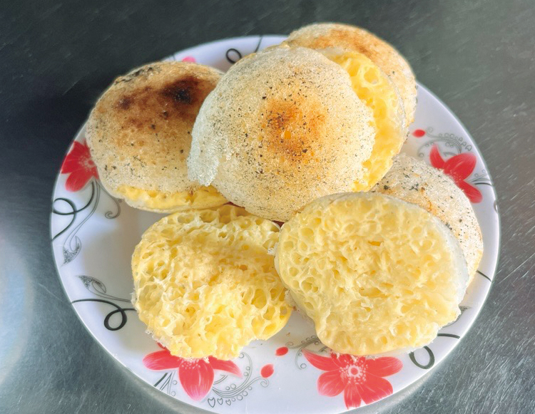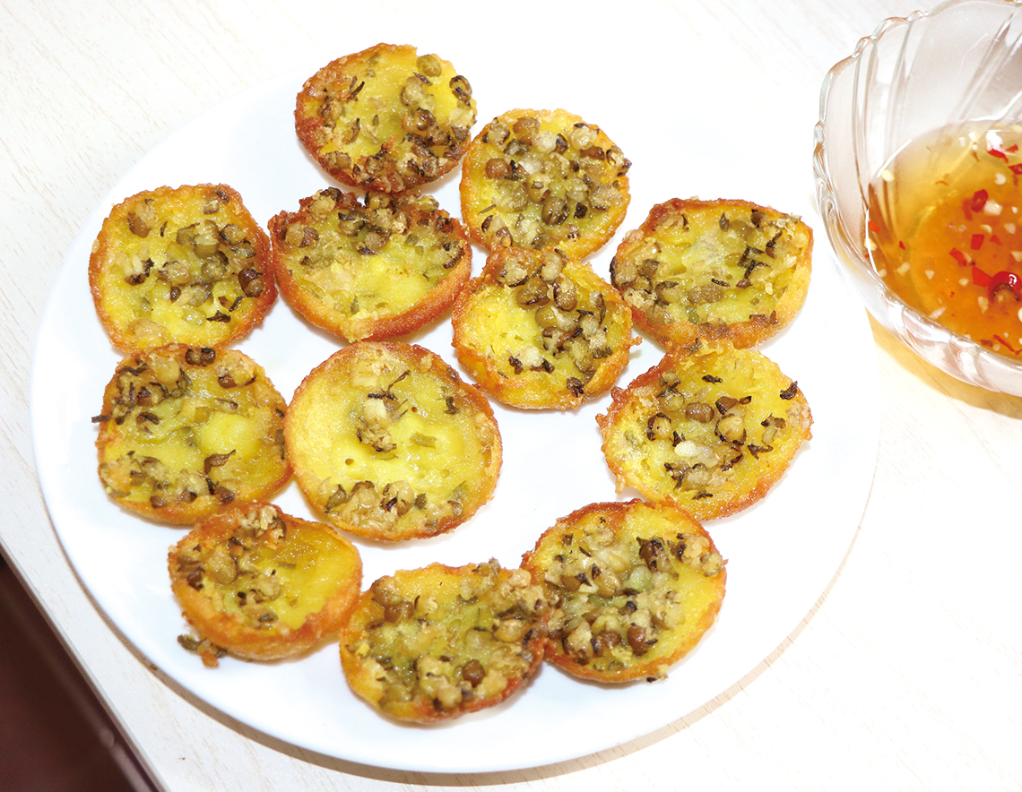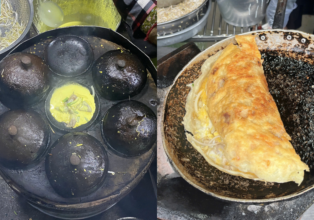 中部エリアのバインセオは、南部よりも小さめで、素朴だけれど個性派ぞろい。元々はチャンパ王国の人々が小さな陶器の鍋で焼いた料理だとされる。ビンディン(Bình Định)省とその周辺では西山(Tây Sơn)朝時代(1778~1802年)、バインセオが戦禍に暮らす人々の日常食として定着。今も霊供養をする旧暦2日と16日にバインセオを食す習慣がある。