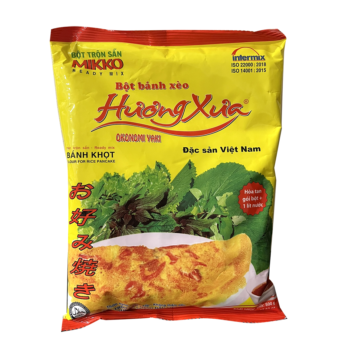 製造元:ターイキーフード (Taikyfood) 原料:米粉、小麦粉、コーンスターチ、タピオカスターチ、食塩(ヨウ素添加)、ターメリック粉、ベーキングパウダー、ココナッツ香料 容量:400g 価格:2万VND