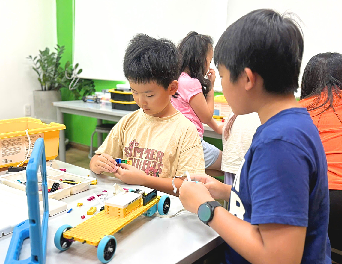 子どもたちは、基礎STEAM、ロボティクス&プログラミング、テクノロジーなど、テーマ別の多彩なコースの中から、LEGO®やK’Nex®を使った実習でロボットの組み立てやプログラミング、ゲームデザインなどに挑戦。活動を通し、論理的思考力や創造力、問題解決力を養う。