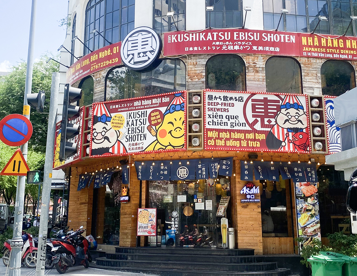 レタントン通りとの交差点の角にある大きな看板が目を引く、賑やかな雰囲気の日系居酒屋