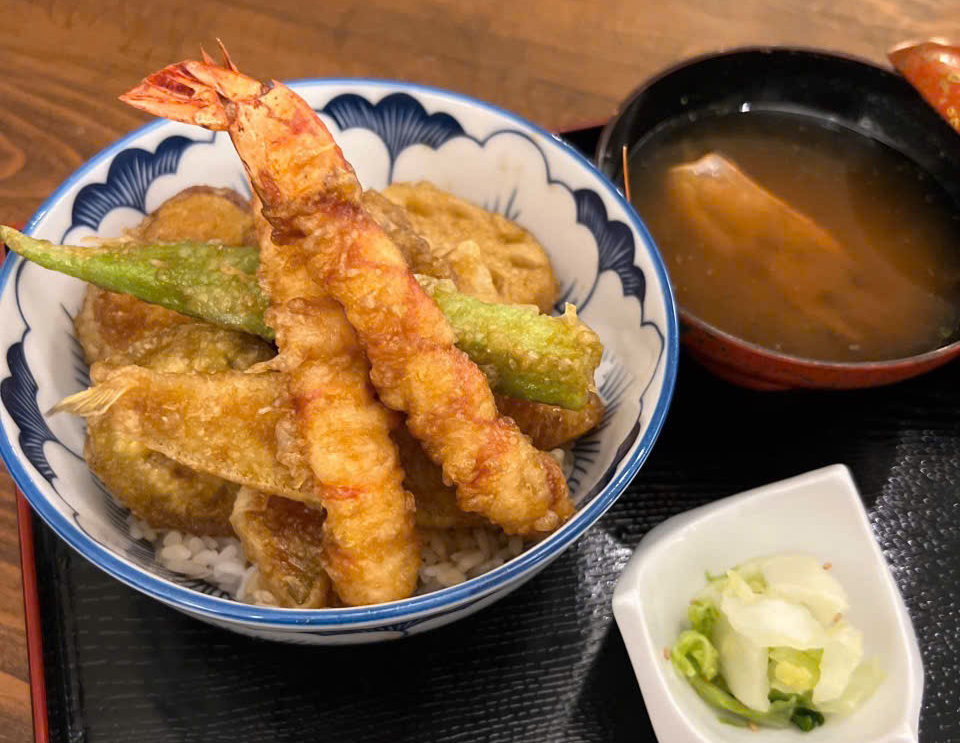 土曜日限定のランチタイムは、家族連れやゴルフ帰りの客で賑わっている。海老やキスの天ぷらに旬野菜5種を盛り込んだ「花美特製天丼」や「かき揚げ丼」は人気メニュー。子ども連れに嬉しい「キッズプレート」(3万9000VND)も用意され、幅広い客層に親しまれている。