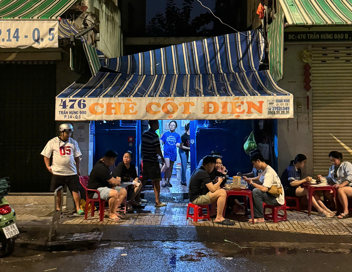 1936年創業のデザート店。夜遅くまで薄暗い街灯の下で営業し、夜が更けるにつれ客が増えることからこの店名で知られる。メニューは約20種類の華人伝統チェーで、ゼリーは少なめだが、豆や各種トッピングをそれぞれのチェーに合わせて用意。かつては電柱の前にあったため「チェーコットディエン/Che Cot Dien(電柱チェー)」とも呼ばれたが、現在、電柱は撤去されている。