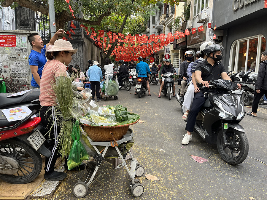 屋台を見つけたらマストトライ! バナナと食べる、ハノイのもち米名物料理