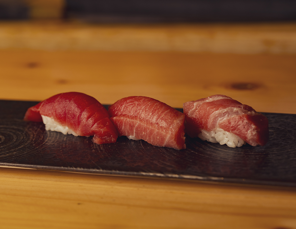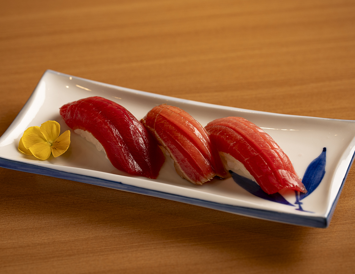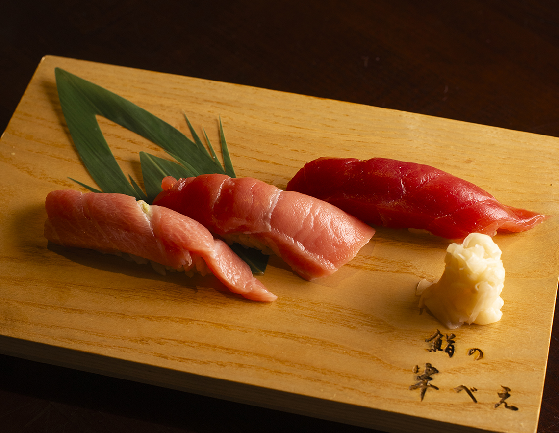 赤身・中トロ・大トロを順番に味わいたい「マグロの握り三種」。