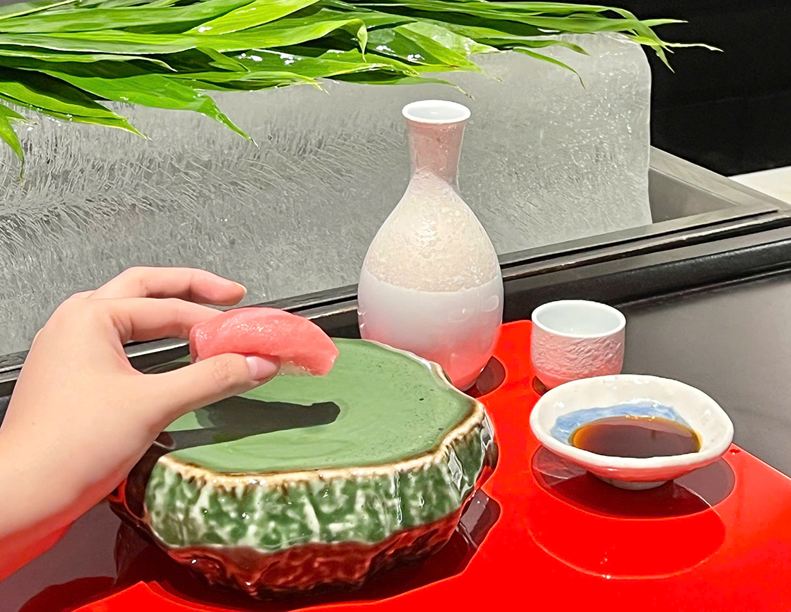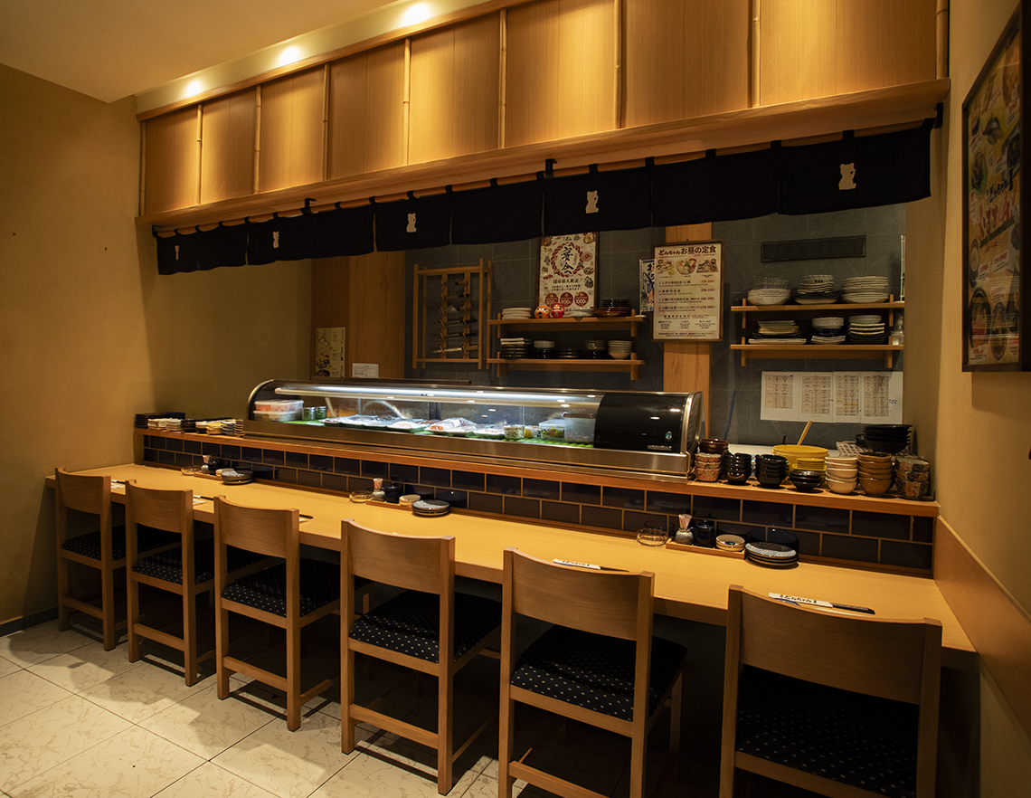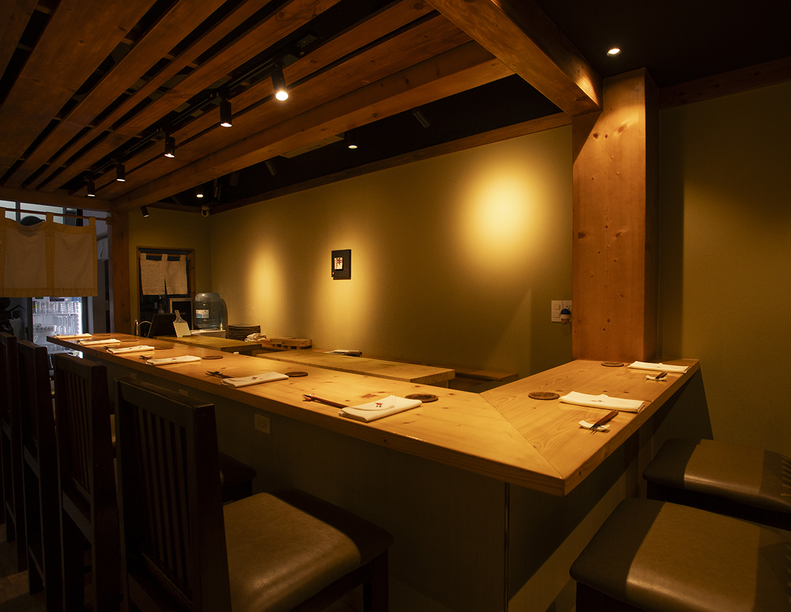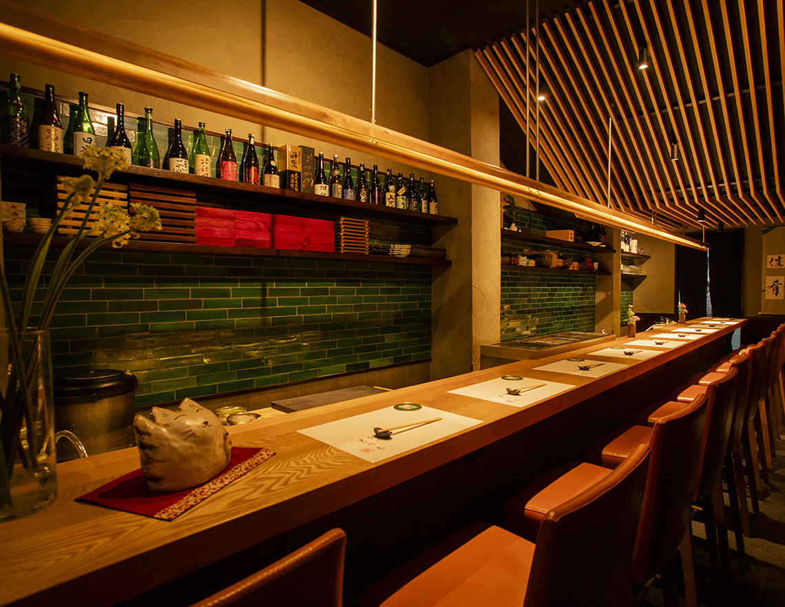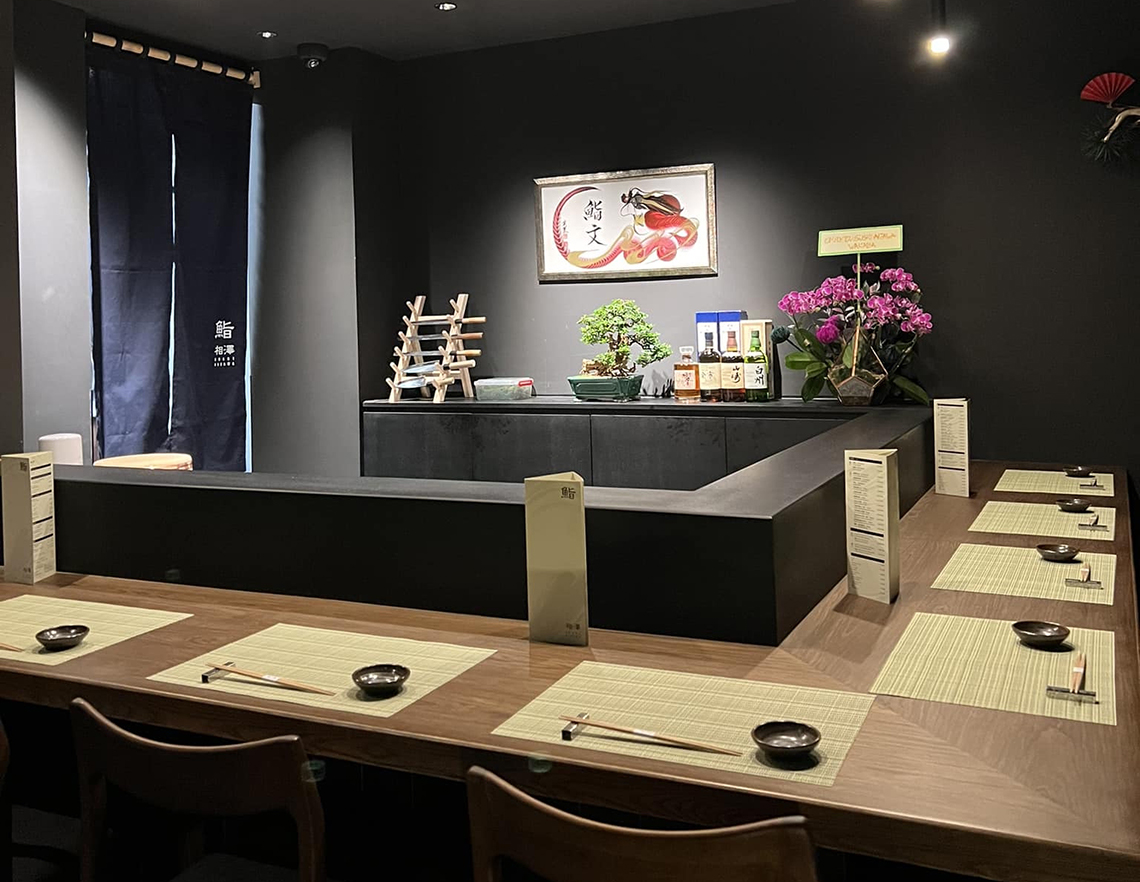 日本人街の奥にあり、厳選した鮮魚x炭火をコンセプトに、季節の風味が感じられる和食と鮨を提供。日本国内外で25年以上の経験を積んだ日本人の寿司職人がもてなしてくれる。