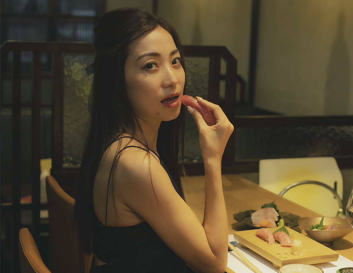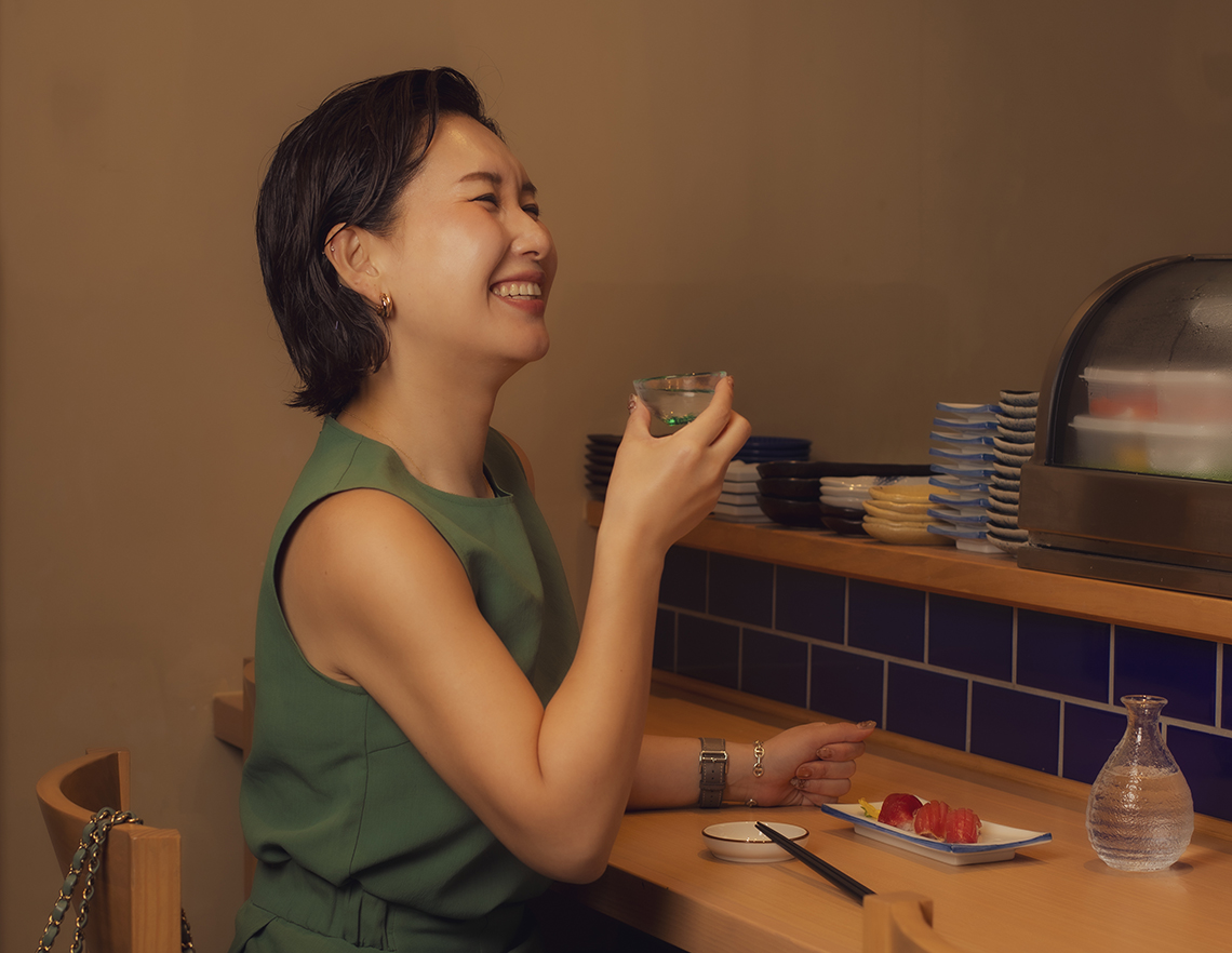 「仕事終わり、ふと思い立ったら 気軽に一人寿司にいきます。友達と予定を合わせる必要もなく、好きなお寿司や料理を食べたいように頼む時間が心地よくて。旬の魚などは詳しくないけれど、おすすめされたら素直に試すなど、自分のペースで楽しめるのが、やっぱりいいですね」