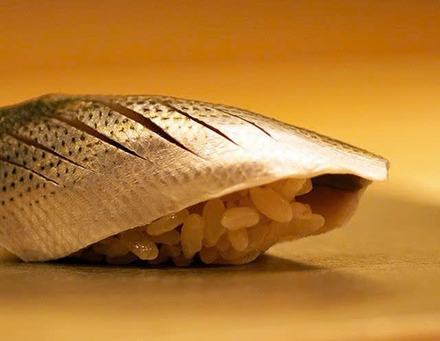 燻製の香りをまとわせたネタと鮨の掛け合わせが新機軸。日本から取り寄せる季節の魚で“香り立つ江戸前”を提案する。三重の日本酒「作」は、店のオリジナル銘柄がグラスで楽しめる。