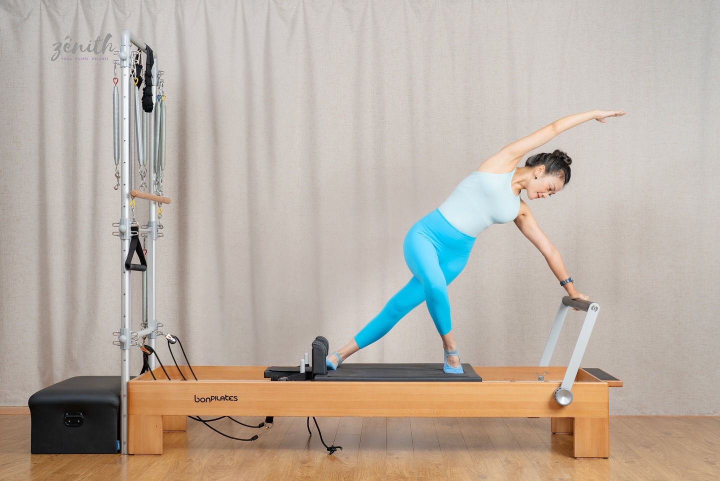 近年はピラティスにも注力しており、自然光が差し込む3つの部屋(30・45・75㎡)に、スペインの有名ブランド「ボンピラティス/Bonpilates」製リフォーマーマシンを備えている。