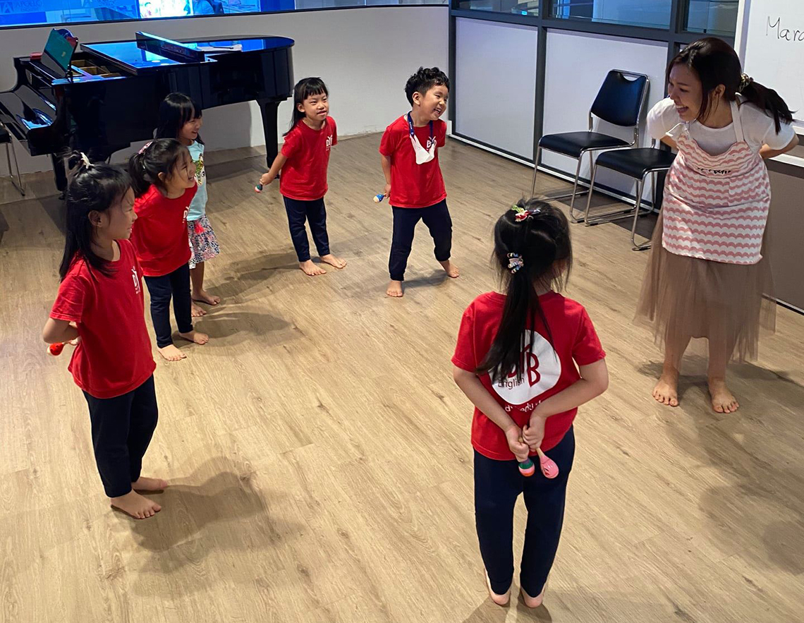 5歳未満のクラスでは、まず音に親しみ、将来のコース選びの方向性を探る