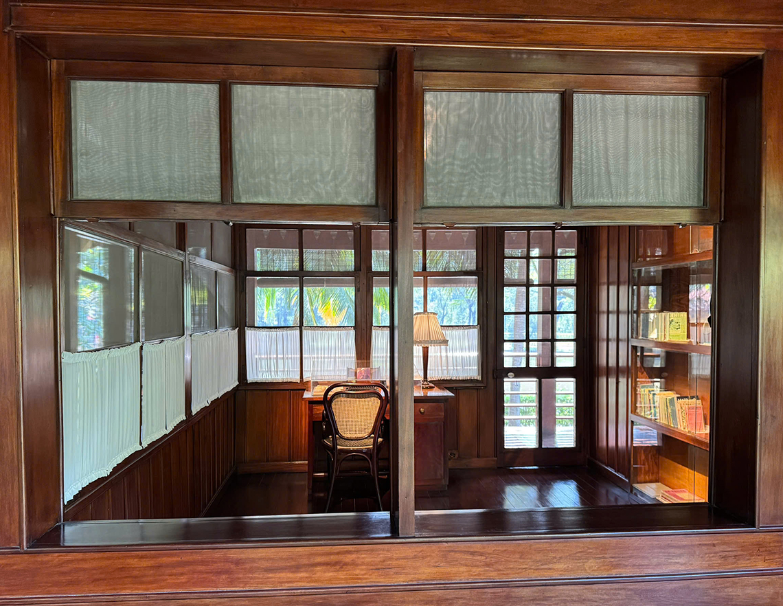 仕事部屋は、質素な机や本棚などが当時のまま残されている
