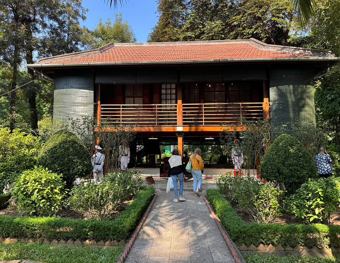 ホーおじさんが1958~1969年に住んだ高床式の家は、ハノイの主席府(Phủ Chủ Tịch)内にある。北部山岳民族の家みたいで、1階は仕事場、2階は10㎡ほどの小さな部屋が2つ。休みの日には、庭にたくさん生えている木と、池の鯉や金魚のお世話をして過ごしていたんだ。