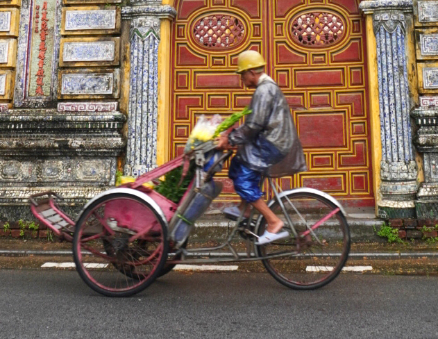 建国記念日(9月2日)などの祝日には、街や村のあちこちで目にするベトナムの国旗。ベトナムの独立のために戦った人たちの思いと平和への気持ちがこめられている。ぼくたちベトナム人は帽子や服のデザインにも国旗をよく使うんだよ。