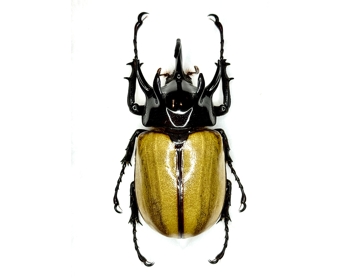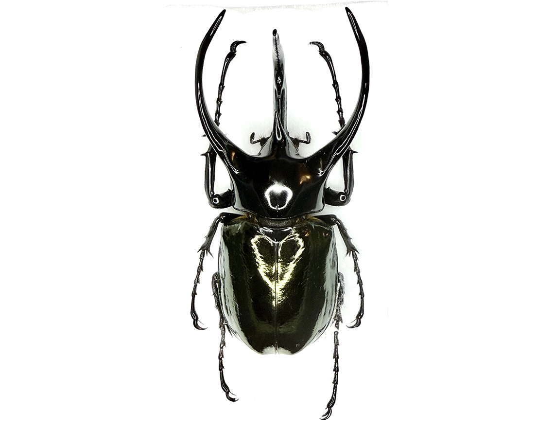 3本の長いツノをもった、アジアでも最も大きなカブトムシ。大きいもので13cmもあるよ