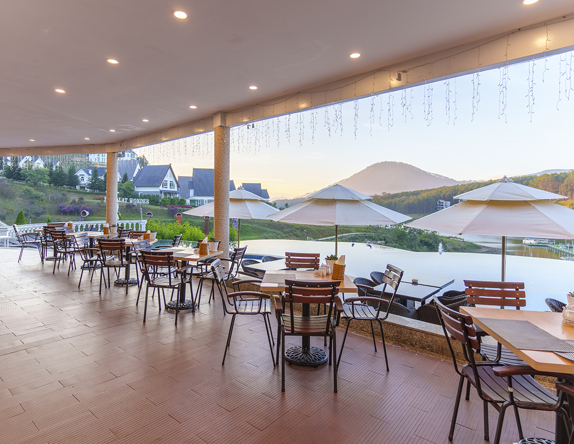 当リゾートホテルと提携する農園で栽培された野菜、果物を使ったレストラン「ラ・フォンテ/La Fonte」では、ベトナム料理、西洋料理、湖畔でのバーベキューなどを提供。最大300人の団体利用も受け付ける