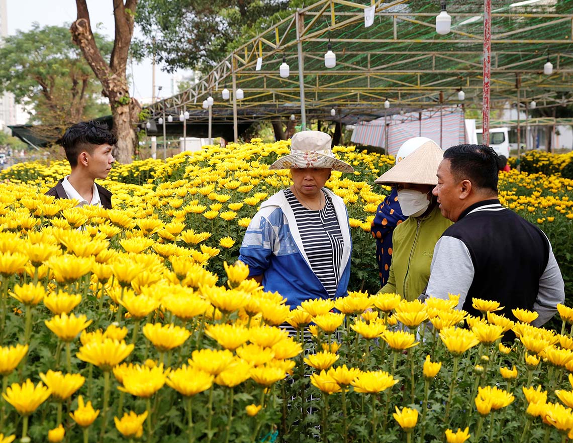 現在では数百の業者が集まる巨大市場だが、1980年代に数軒の小さな花屋から始まったこの市場。テト期間だけではなく通年営業しているが、テト直前になるとダラットやメコンデルタなど各地から旬の花が集まって、いつもより鮮やかな雰囲気に包まれる。菊やバラ、ユリなどの定番の花に加え、胡蝶蘭、チューリップ、梅、桃、観葉植物や盆栽など種類も豊富だ。