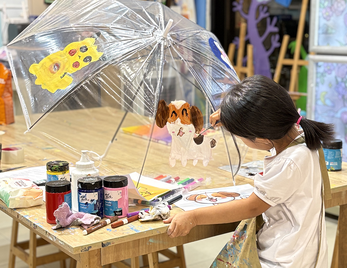 砂や傘を使ったアートなど、手本のない、自由で創造的な芸術体験を提供しているアートスタジオ「ドリーミースタジオ」。粘土や陶芸などのクラフトやデジタルペイントなど、追加料金なしでさまざまなアートを幅広く組み合わせ、生徒の自由な発想を手助けする。