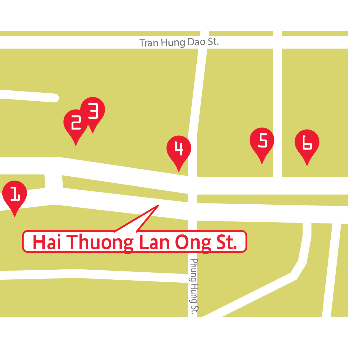 伝統薬店や東洋医学の診療所が集まるこの通りは、薬草の香りと古い看板が特徴的だ。テトや中秋節の時期には伝統的な装飾が並び、色鮮やかな商業エリアとしても知らる。キムビエン(Kim Bien)市場にも近く、卸売店が多い。
